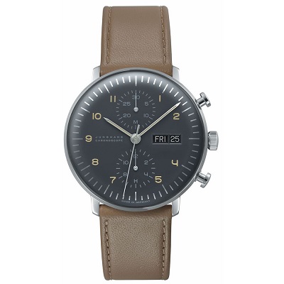 Kaip ir visų šios kolekcijos laikrodžių atveju, taip ir mechaninio „max bill Chronoscope“ dizainas yra labai įspūdingas, nes jis sutelktas į pagrindinius dalykus. Tai galima patvirtinti paprastu, minimalistiniu ciferblato dizainu. Atsisakius mažos sekundės rodyklės sukuriama ypač ryški simetrija.