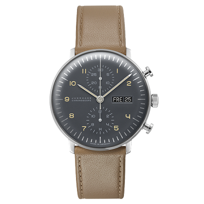 Kaip ir visų šios kolekcijos laikrodžių atveju, taip ir mechaninio „max bill Chronoscope“ dizainas yra labai įspūdingas, nes jis sutelktas į pagrindinius dalykus. Tai galima patvirtinti paprastu, minimalistiniu ciferblato dizainu. Atsisakius mažos sekundės rodyklės sukuriama ypač ryški simetrija.