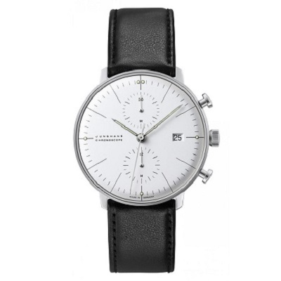 Kaip ir visų šios kolekcijos laikrodžių atveju, taip ir mechaninio „max bill Chronoscope“ dizainas yra labai įspūdingas, nes jis sutelktas į pagrindinius dalykus. Tai galima patvirtinti paprastu, minimalistiniu ciferblato dizainu. Atsisakius mažos sekundės rodyklės sukuriama ypač ryški simetrija.
