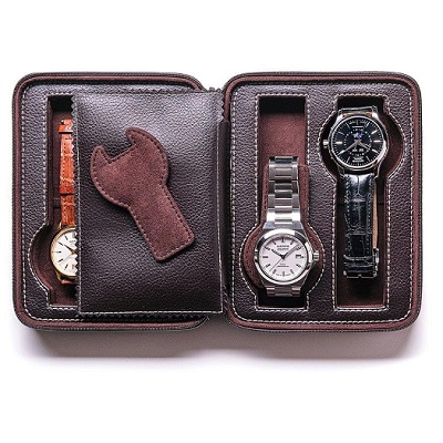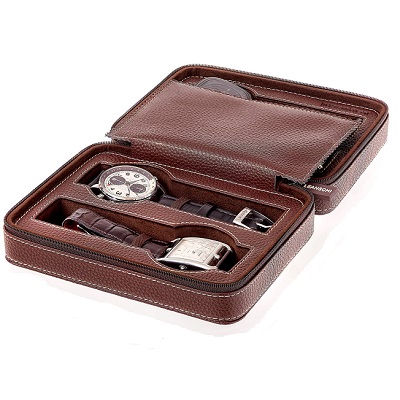 ZIP dėklas laikrodžių laikymui | 4 laikrodžiams | ruda PU oda