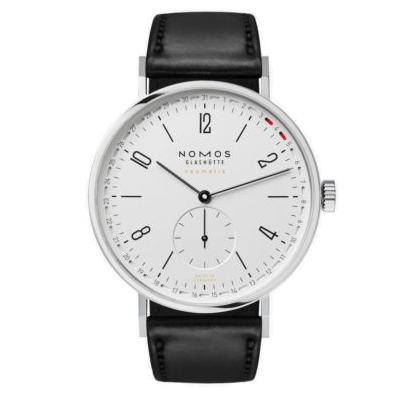 Tangente, ikoninis NOMOS laikrodis. Unikalumas šio laikrodžio data, jos padėtis yra, aplink skaitiklio kraštą, matomi du raudoni taškai, įrėminantys dabartinę datą. Estetika, kurią galima priskirti naujam „Neomatik“ kalibrui viduje. Tai nepakartojama ir neabejotinai „NOMOS Glashütte“.